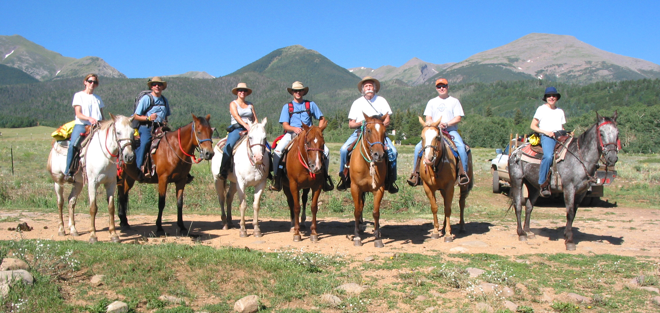 left, Amelie, Johanna, and Stacy), and I prepare to ride up to a mountain