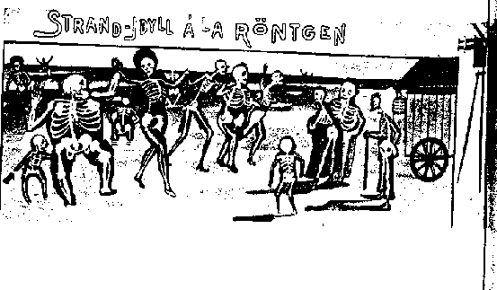 | The new X-Strahlen quickly captured the imagination of the German public. The above scene from a postcard shows skeletons frolicking at the beach. | |||