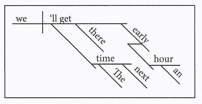 | On the right is a diagram of the sentence "The next time we'll get there an hour early." The words time and hour are adverbial objectives. They modify the verb will get and the adverb early, respectively. The article the and the adjective next modify time; the article an modifies hour. There is an adverb. | ![]() |